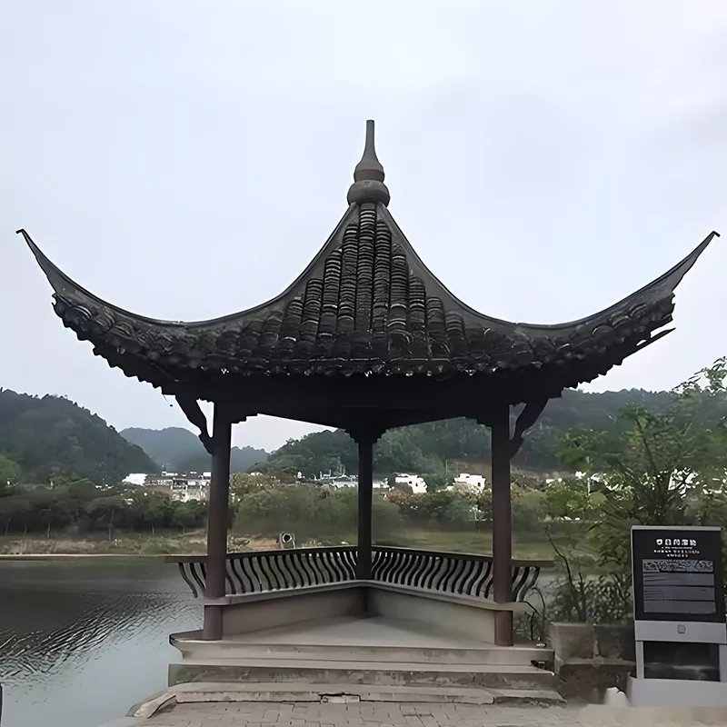 Stöder anpassning av icke-standardstorlek (3000-6000 mm), som täcker klassiska Huizhou-former som fyrhörniga spiralpaviljonger, sexhörniga paviljonger och åttahörniga paviljonger. Träalternativ inkluderar borneol, gran, konserverande furu, etc., och kakeltyper kan anpassas med små gröna plattor och cylindriska plattor. Installationen använder betongbas för att fixera pelare, skarvning av tapp- och tappstrukturer på plats för att undvika våldsam montering som skadar tappar. Taket läggs av professionella plattsättare enligt Huizhous hantverksskicklighet för att säkerställa smidig dränering, och det hela behåller regelbundenhet och charm i Huizhous antika arkitektur.