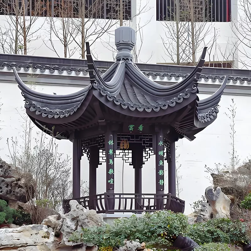 Shandong Duoping New Material Technology Co., Ltd. är en professionell FoU, produktion och leverantör av paviljonger i Huizhou-stil. Vi förlitar oss på traditionellt Huizhous uråldriga arkitektoniska hantverk, tillverkning av tapp- och tappstrukturer och kärntekniker för handgjorda tegel- och träsniderier, och vi replikerar den klassiska formen av Huizhou-arkitektur med "svarta plattor, vita väggar, uppåtvända takfot och upphöjda hörn". Vi skapar paviljongprodukter i Huizhou-stil som kombinerar gammal arkitektonisk charm, stabilitet, hållbarhet och kulturell textur. Som en central landskapsarkitektur för trädgårdar i Huizhou-stil och scener i kinesisk stil, används våra paviljonger i stor utsträckning på innergårdar i Huizhou-stil, uråldriga natursköna platser, hemvistelser i kinesisk stil, kommunala trädgårdar och andra scenarier. Med lösningen "traditionellt hantverk + modern korrosionsskydd" ärver vi Huizhou-kulturen. Vi ser verkligen fram emot att arbeta med dig för att tillhandahålla skräddarsydda lösningar för olika landskapsprojekt i Huizhou-stil.