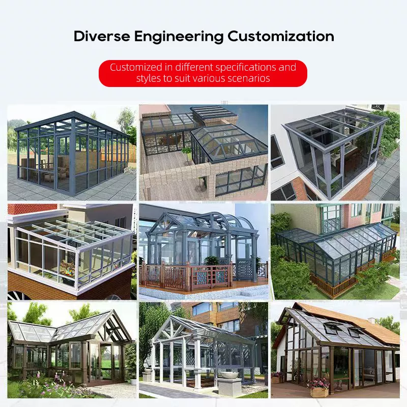 Våra solrum i aluminiumlegering med värmeavbrott exporteras i stor utsträckning till Europa och Nordamerika och är erkända för sina energieffektivitet, strukturell stabilitet och modernt utseende. Vi ser verkligen fram emot att bygga en långsiktig partnerskap och bli din pålitliga leverantör i Kina.